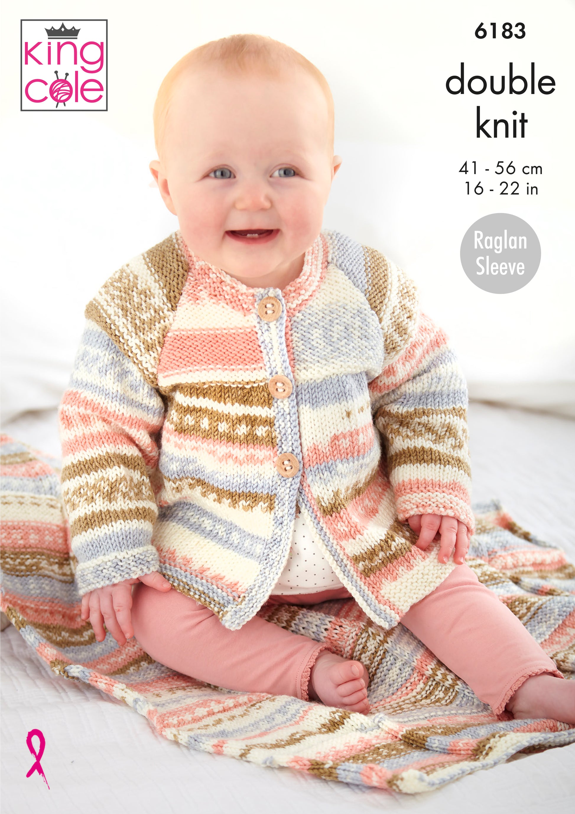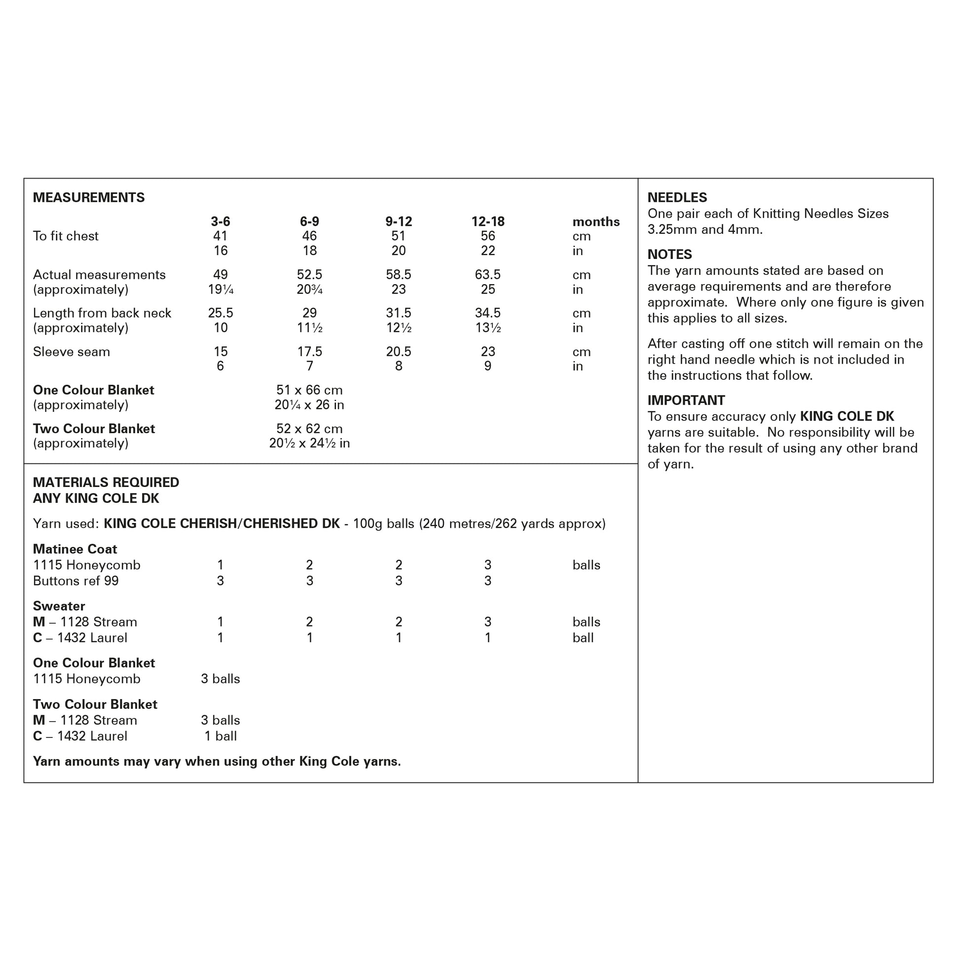 These lovely textured knits are great for newborns and toddlers alike, they are knitted in King Cole Cherished DK, a super soft yarn with lovely solid and flecky colourways, that is also washable.