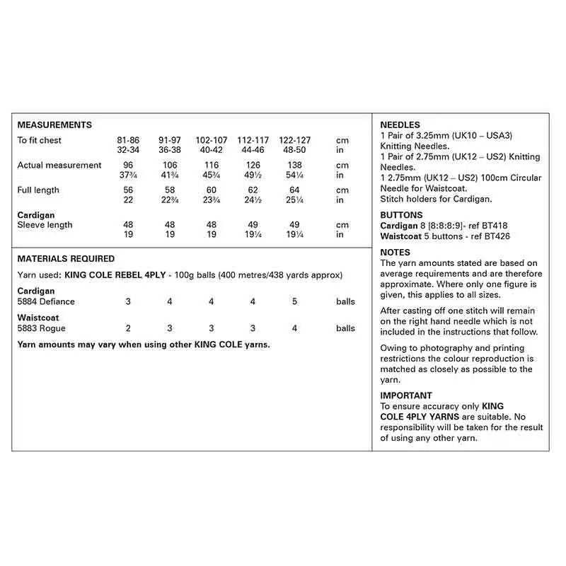 Simple Cardigan and Waistcoat pattern, the cardigan has set in sleeves. Both patterns show off the Rebel 4ply yarn really well!