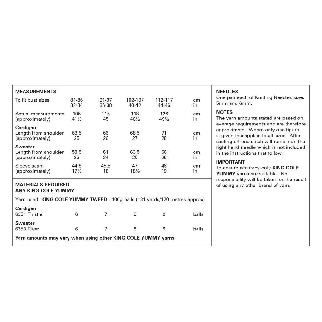 Cardigan and Sweater pattern, knit in Yummy Tweed, could also be knit in Yummy or Rico's Chenillove if you'd prefer a plain colour.