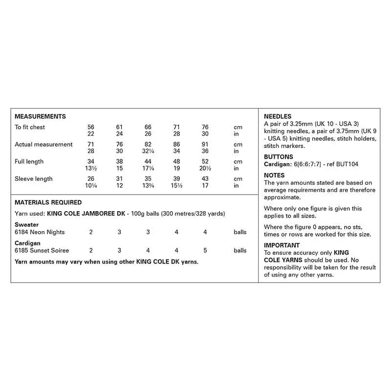 Knit in King Cole's brand new Jamboree yarn, these patterns are perfect for summer cover ups. The all over pattern makes this simple knit look impressive!