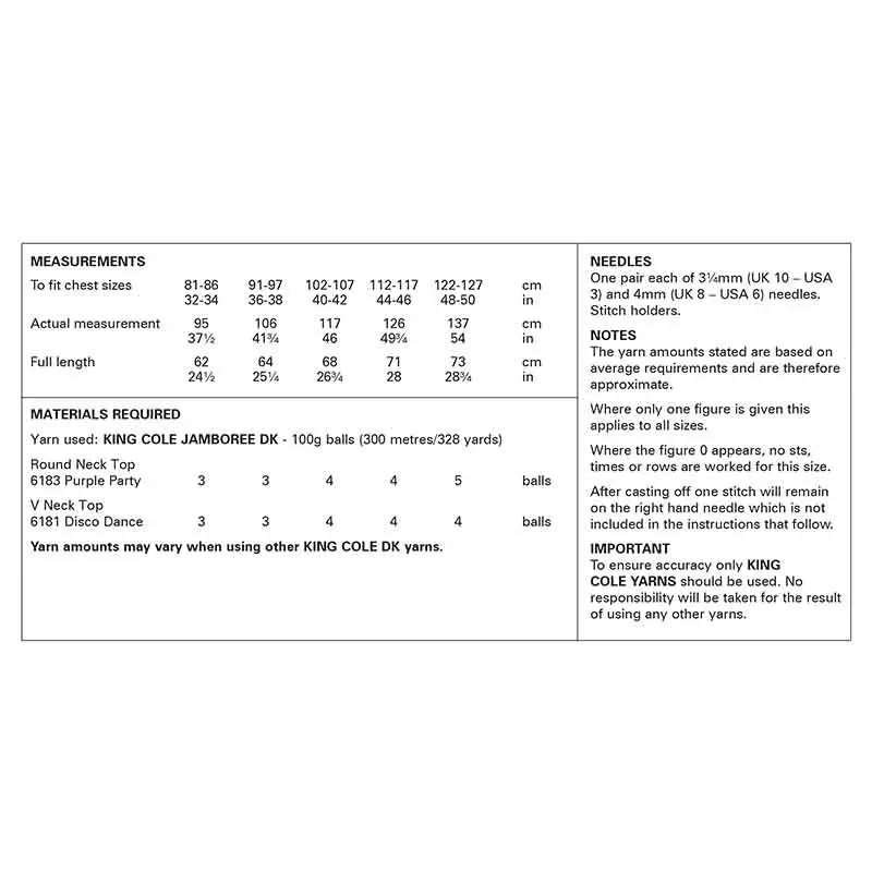 Knit in King Cole's brand new Jamboree yarn, these patterns are perfect for summer cover ups. The all over pattern makes this simple knit look impressive!