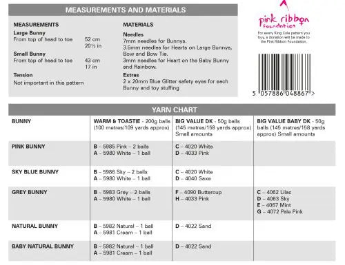 Knit using King Cole's Warm & Toastie which is a brand new yarn that they've added to their range. It is super soft and fleecy meaning these knitted rabbits will be lovely and cuddly for babies and children.