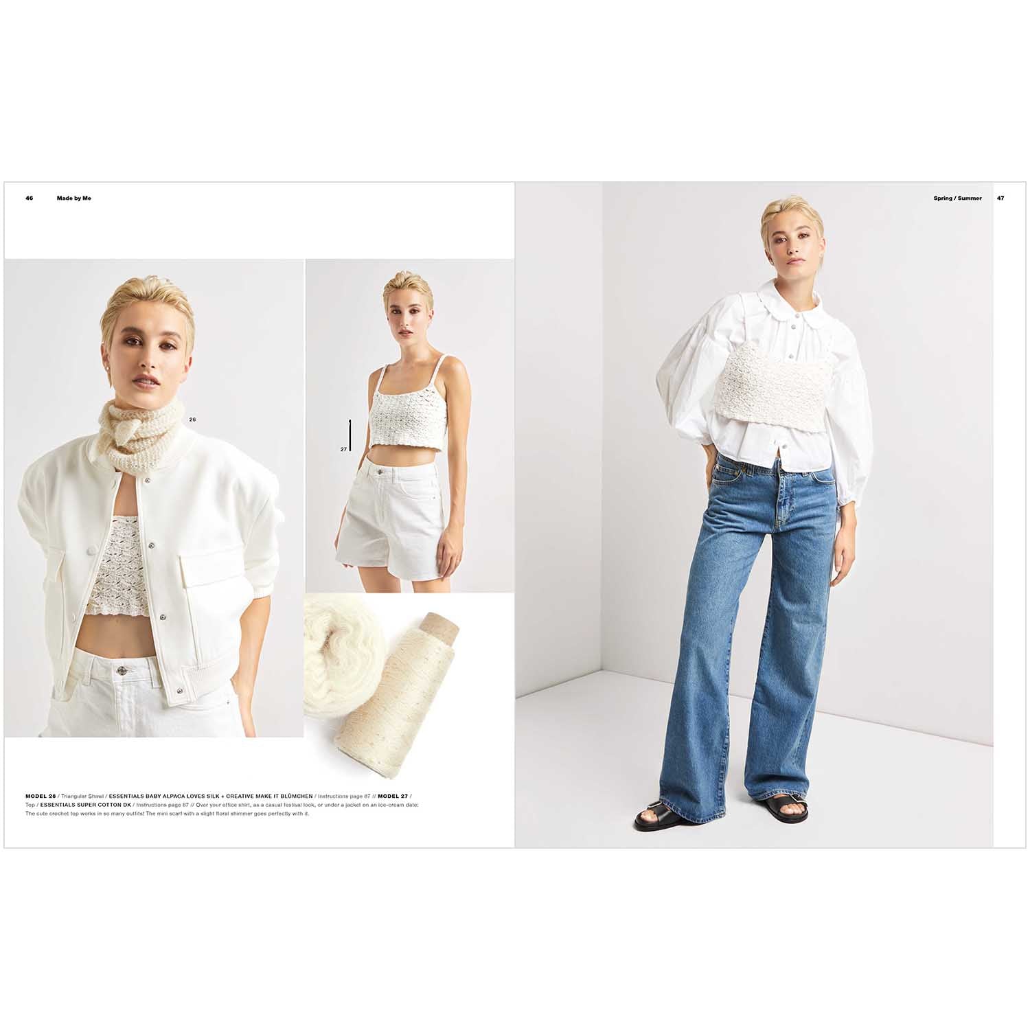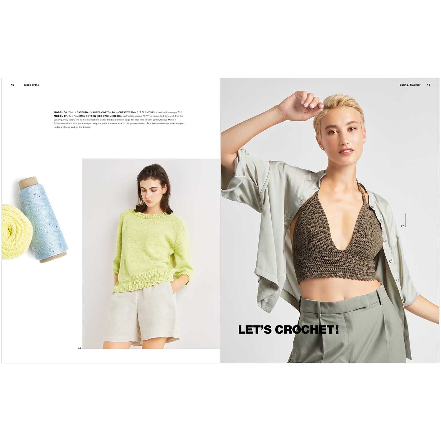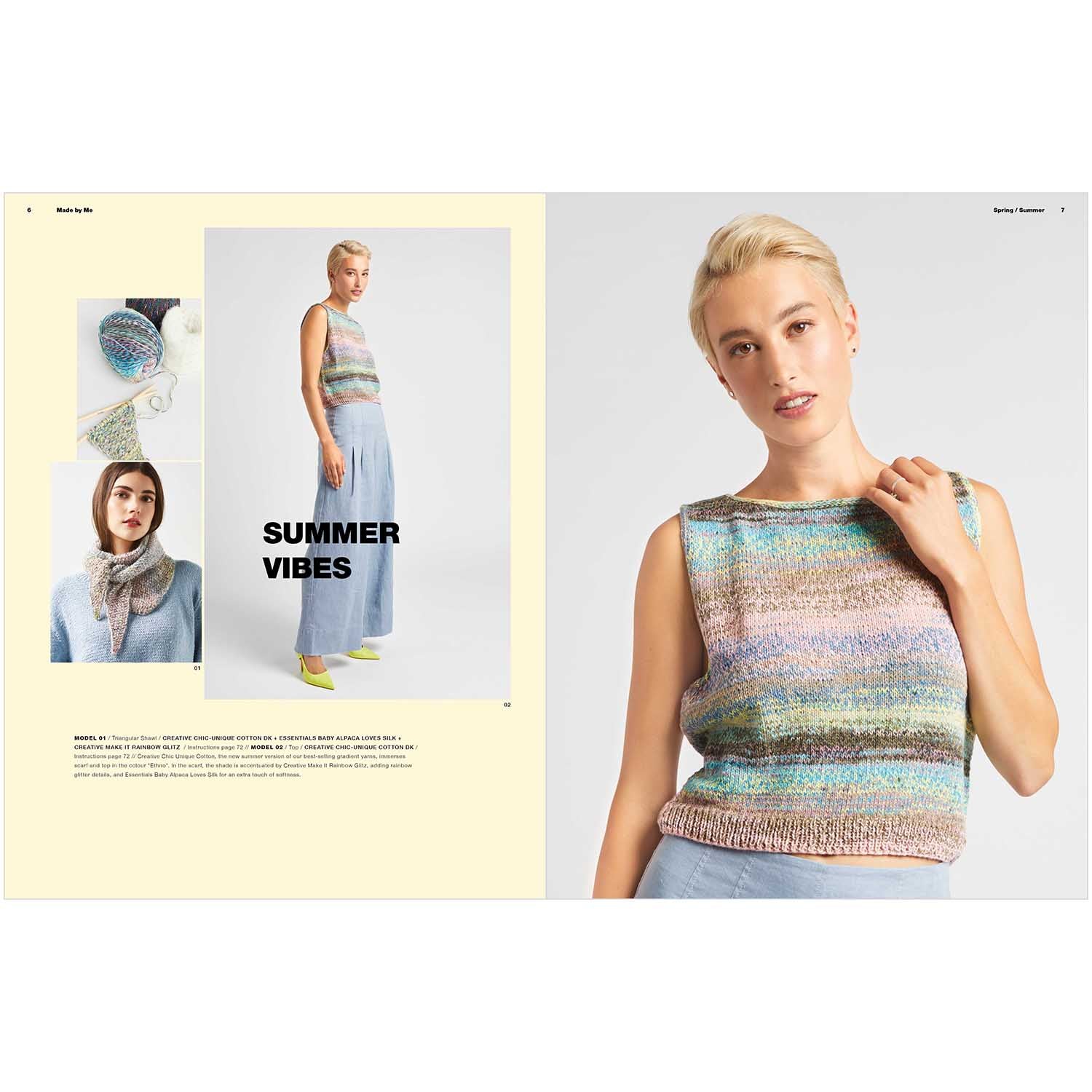 Rico's Made by Me No. 20 knitting magazine showcases 34 modern designs for garments and accessories for your spring/summer wardrobe.