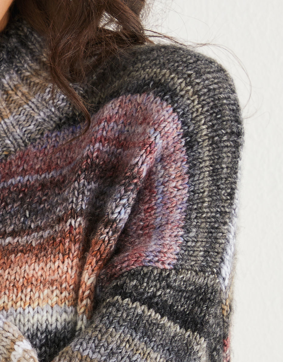 Picture on the pattern is knitted in Sirdar Jewelspun Aran, Crystal Quartz.