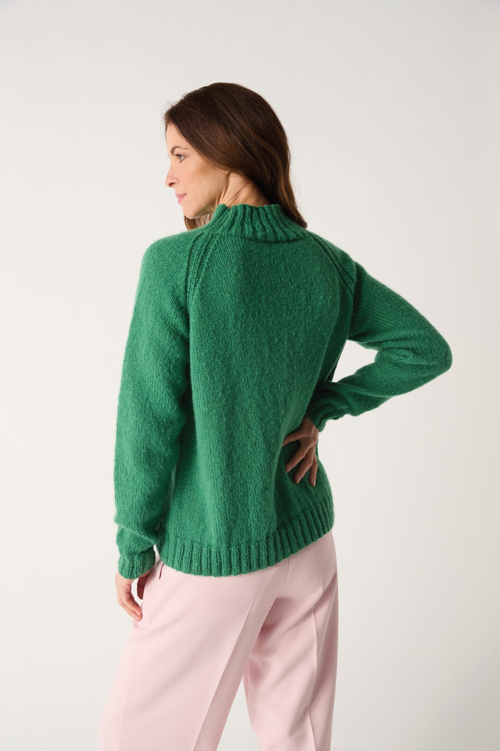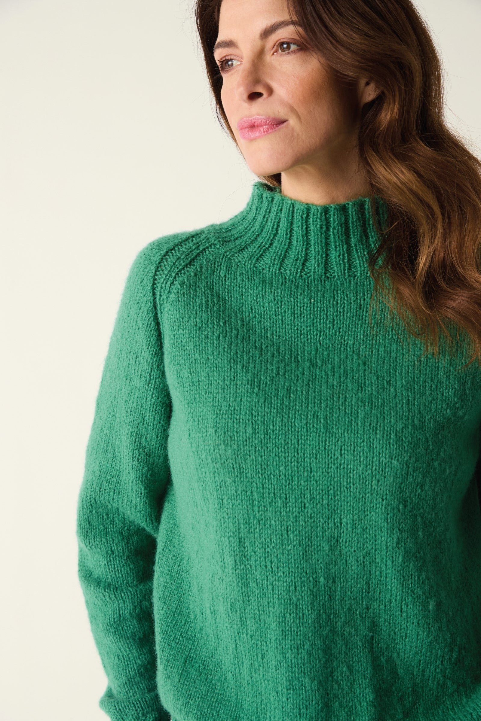 This soft sweater will look beautiful in any shade of gently brushed Sirdar Soft Down. Knit it on 5mm needles for a loftier, airy knit, with neat raglan sleeves and a chunky rib to subtly advertise your hand-knitting skills.