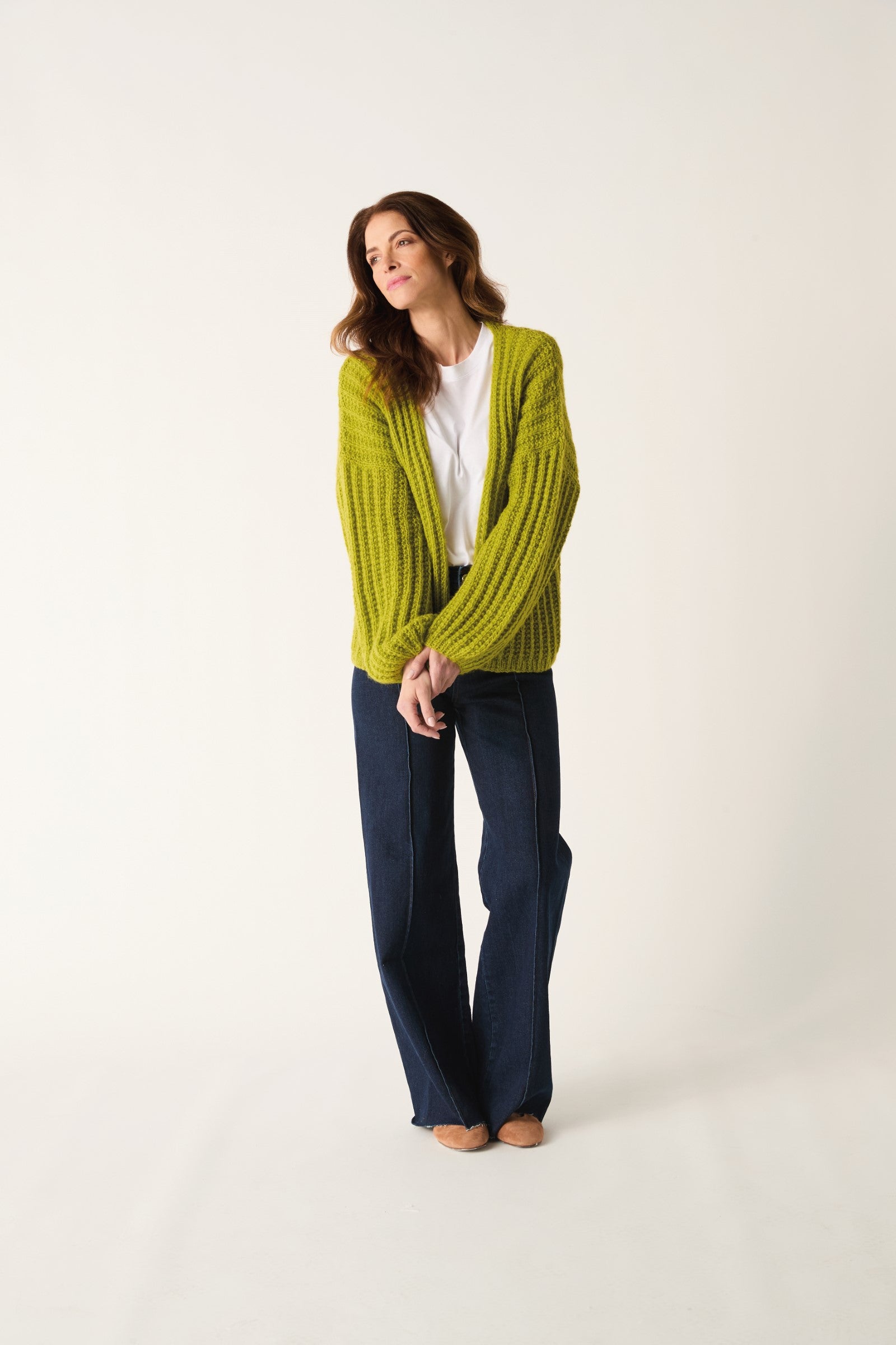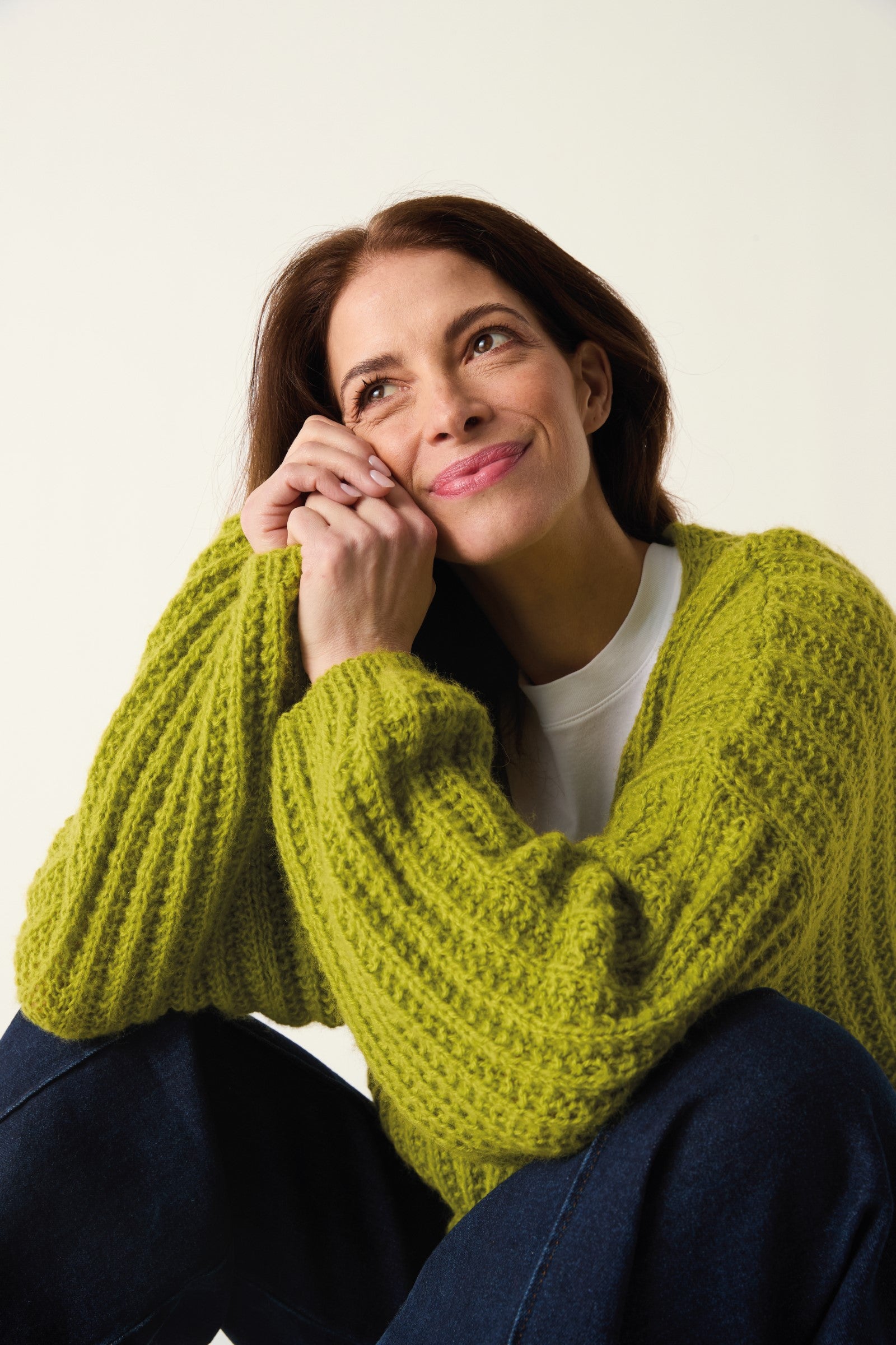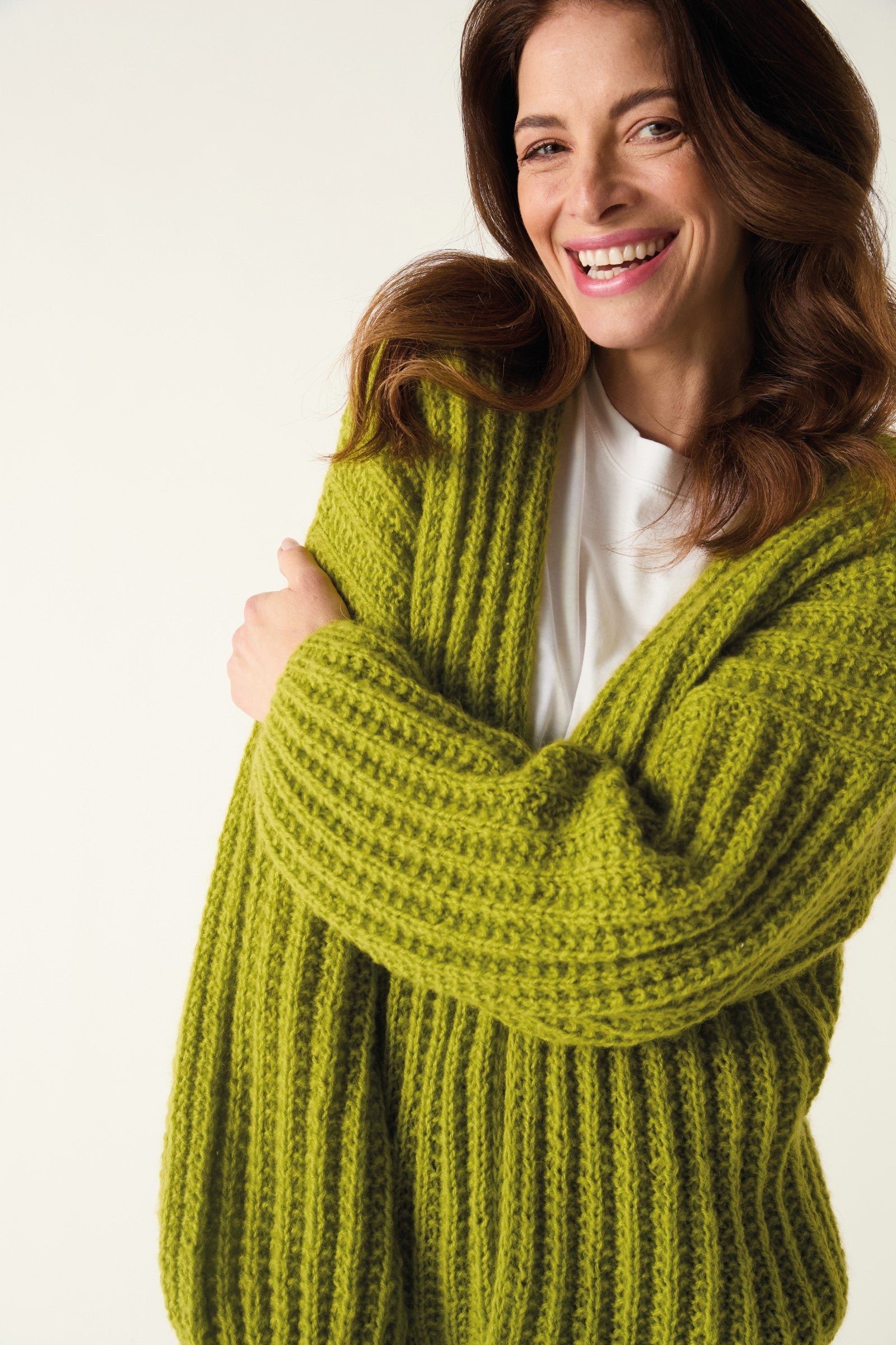 Cardigans don’t come cosier than this oversize design in seed stitch rib with generous balloon sleeves. Knit it on 6mm needles in gently brushed Sirdar Soft Down for a cosy cardi that feels as light as air to wear.